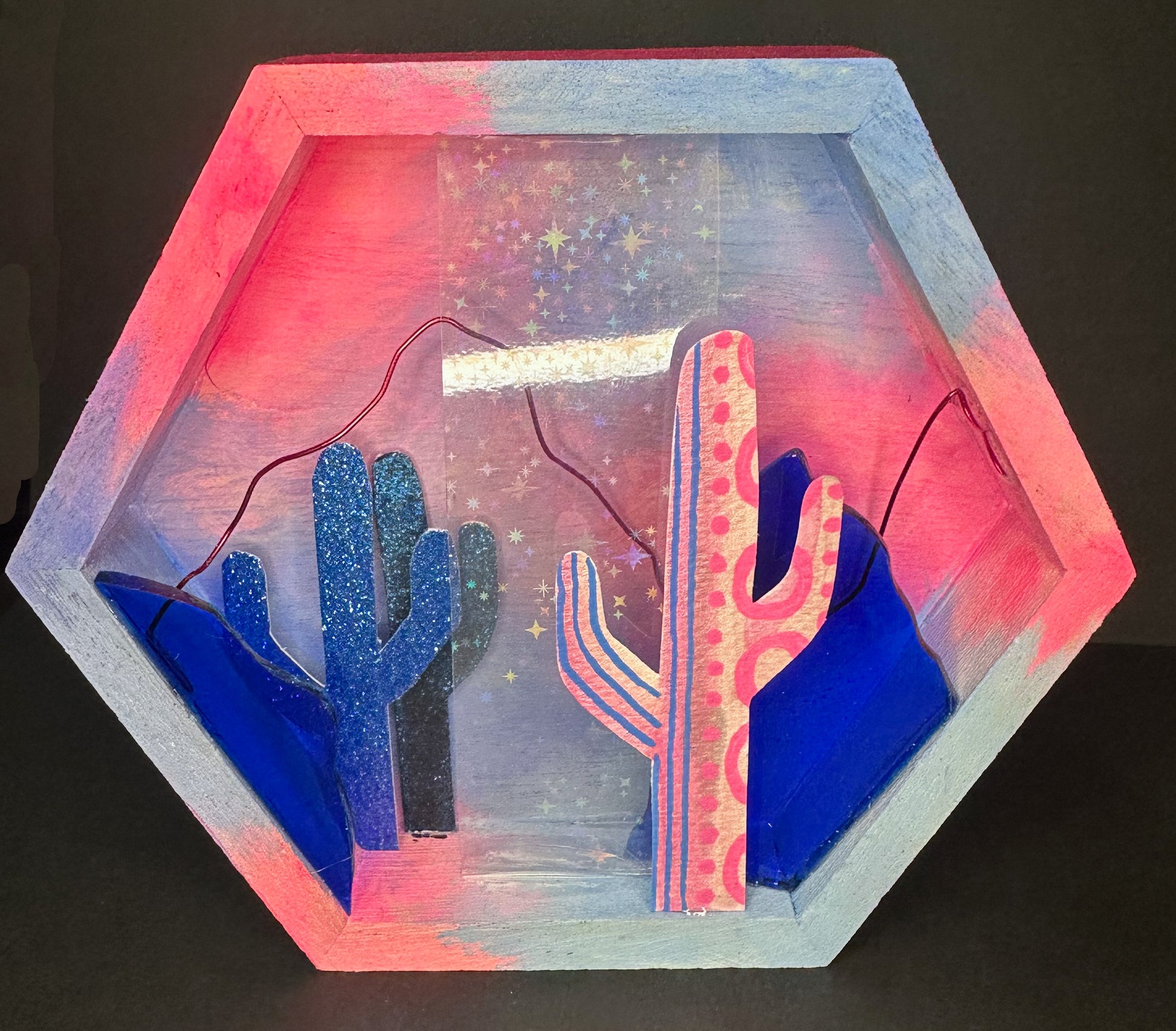 5” x 6” shadow box. Acrylic, wire, vellum, and paper on wood.