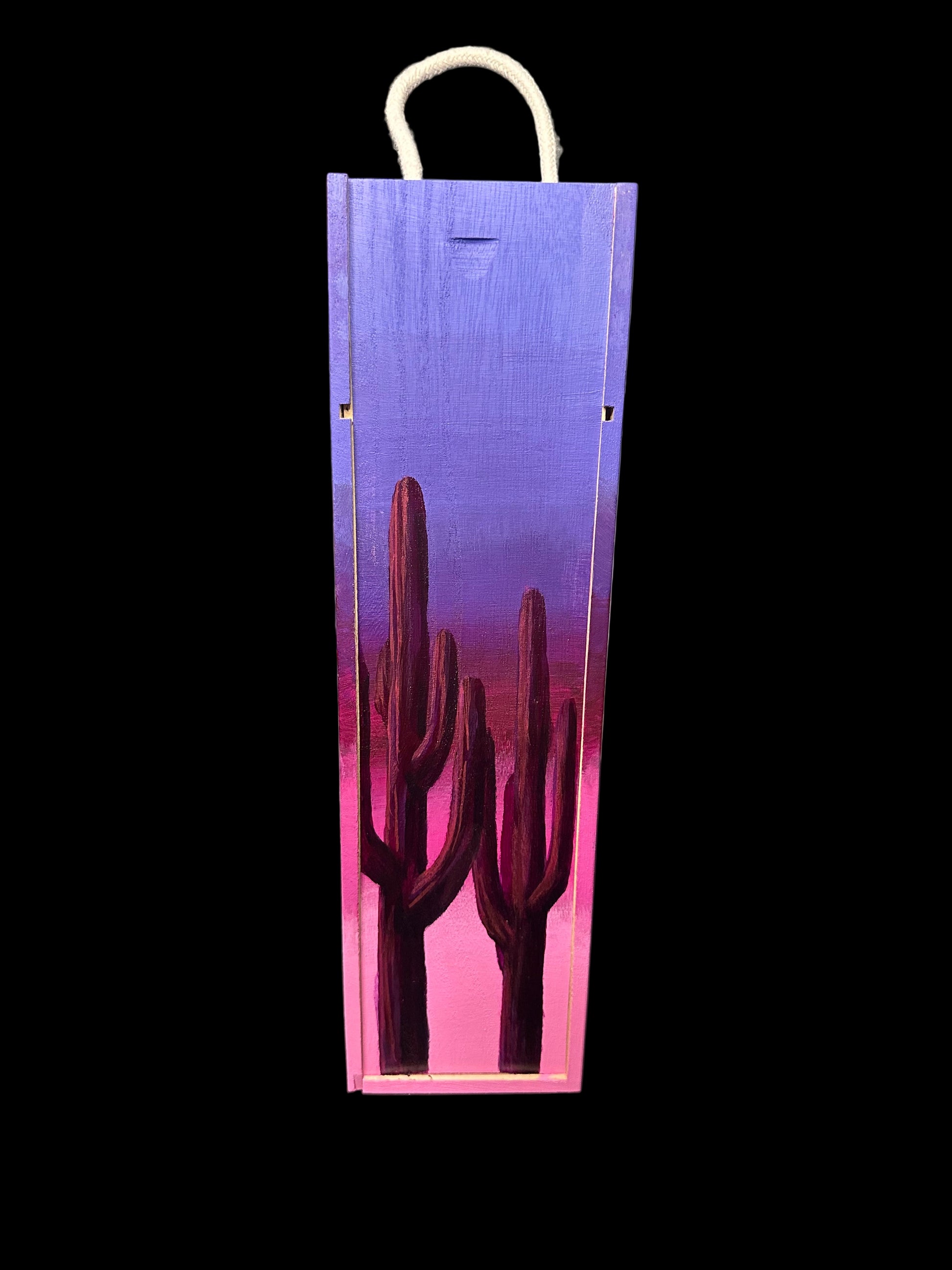 Painted wine gift box. Fits standard bottle of wine. Gift tag sold separately.
