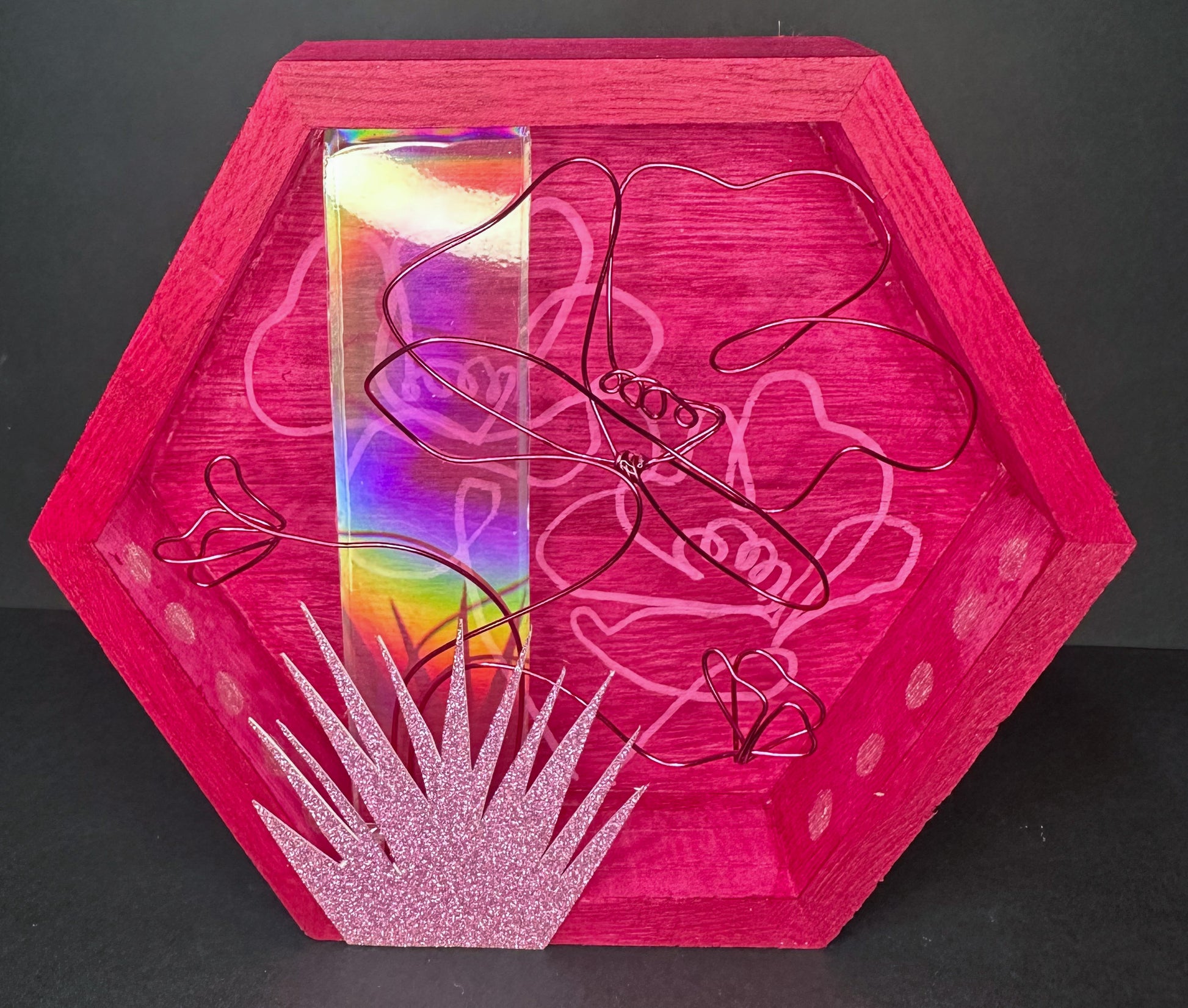 5” x 6” shadow box. Acrylic, wire, vellum, and paper on wood.