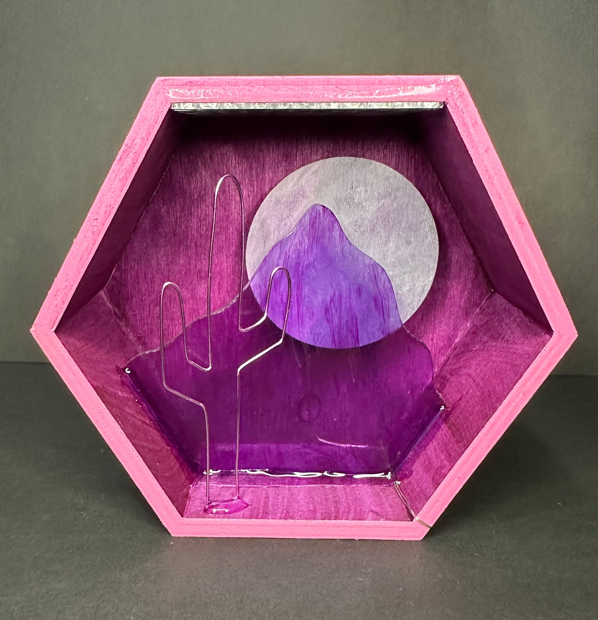 4” x 4” shadow box. Acrylic, paint, mirrors, and lights on wood.