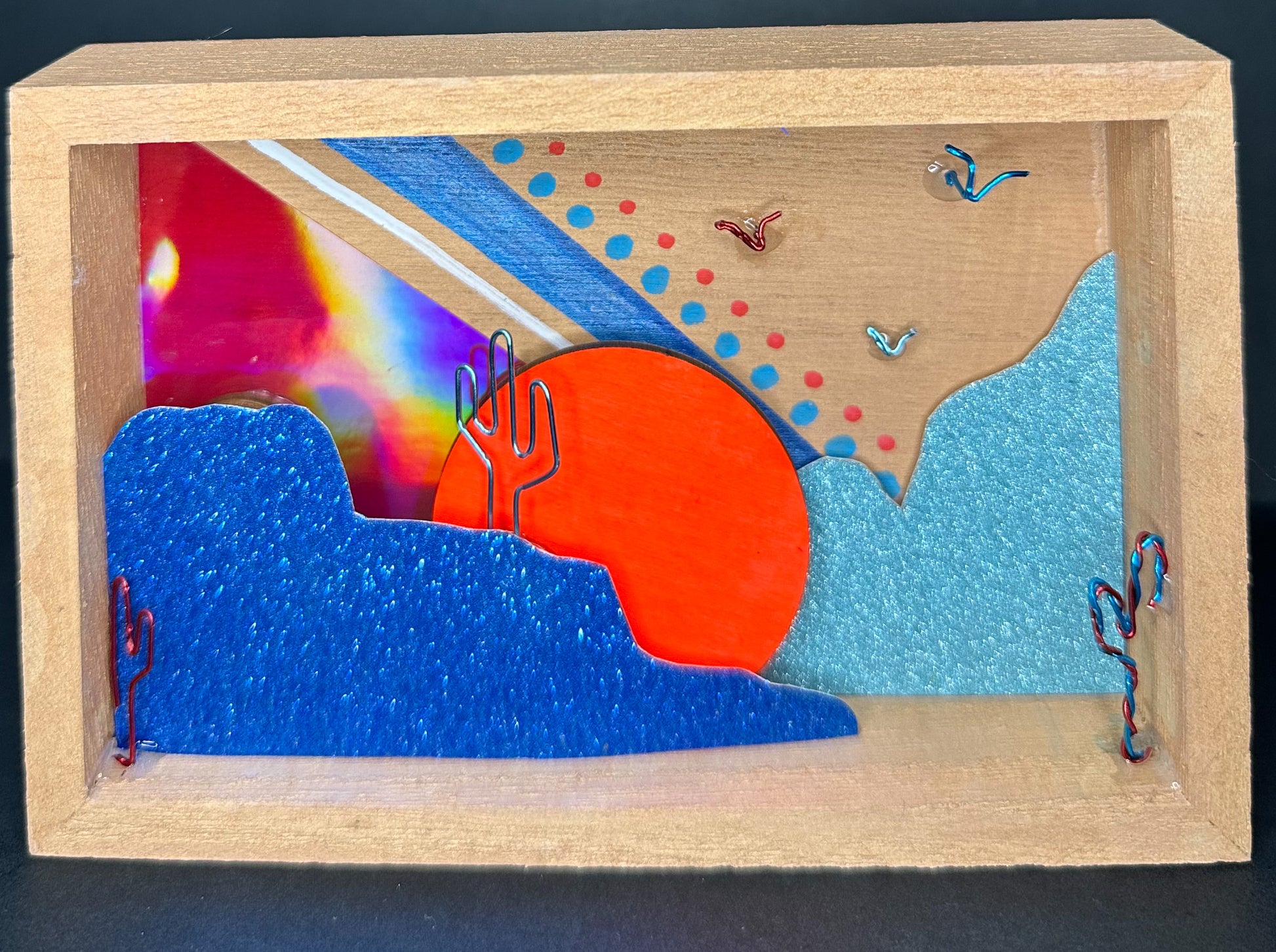 4” x 6” Shadowbox. Acrylic, Paper, and Wire on Wood.