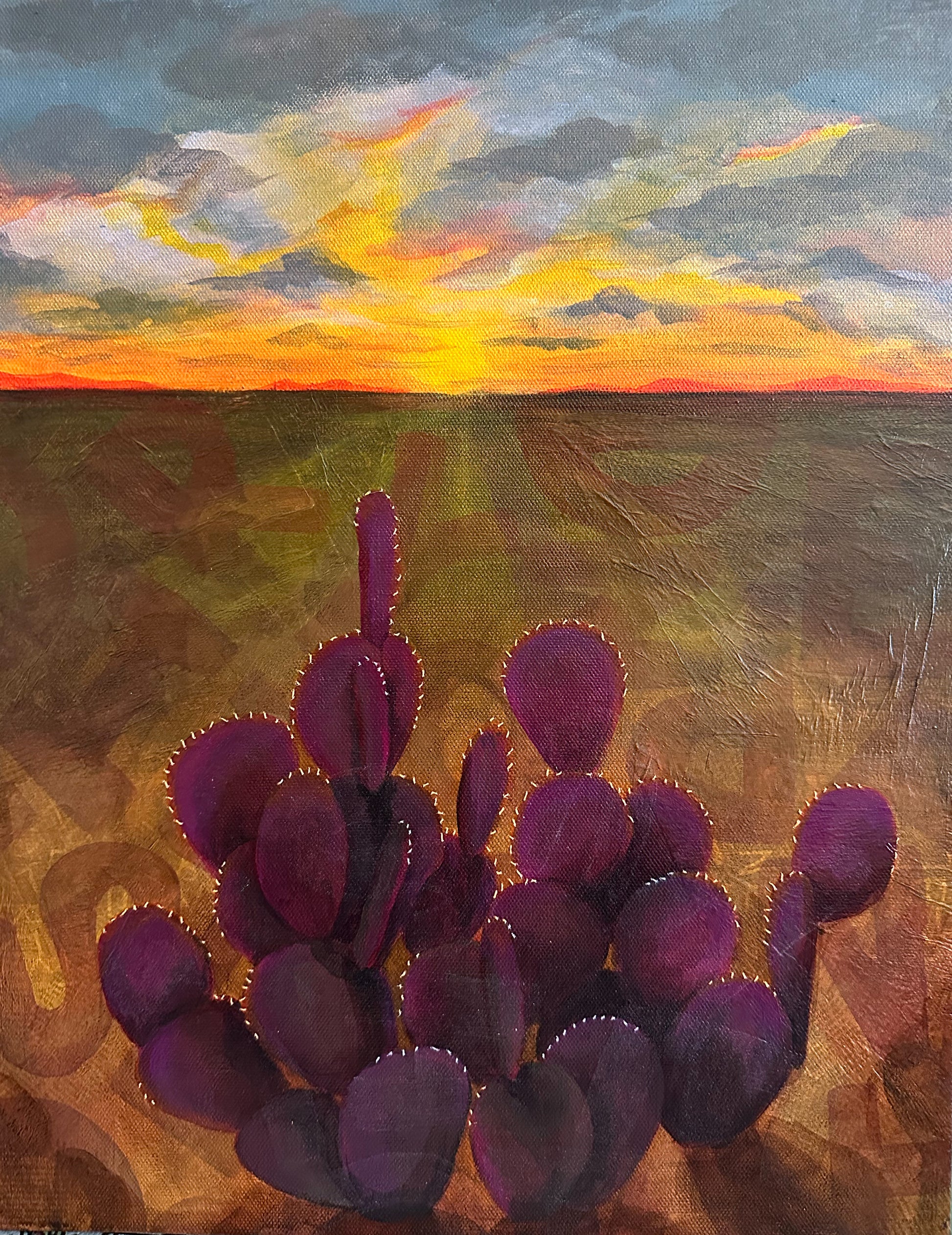 14” x 18” Acrylic, Paper, and Embroidery on canvas. Hidden details revealed with blacklight.